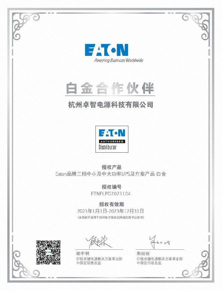 • 伊頓2023中小及中大功率白金授權